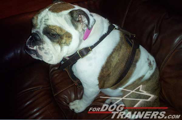 Quality Designer Leather Dog Harness for English Bulldog breed