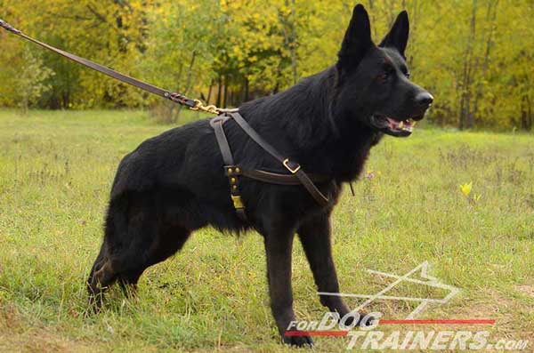 Leather Pulling Dog Harness for German Shepherd with Brass Hardware