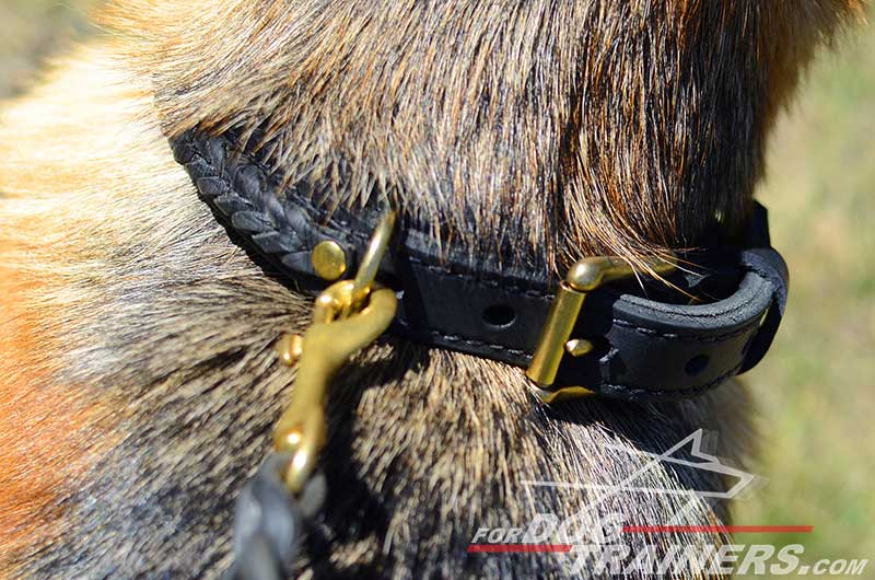 Making up your mind to get a collar for your German Shepherd you try to find the best of the best, do not you? You know that it is an indispensable accessory for a pet so it should combine necessary characteristics. 2 Ply Leather Buckle Collar with Braided Design is a correct choice. It is practical for everyday wear and well-suitable for a variety of settings. Being a top quality product it answers international standards of safety and quality.