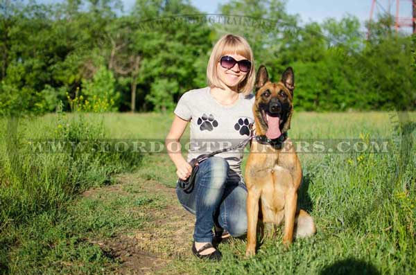 This Splendid Leather Collar is appropriate for different dog activities. Everyday walking is one of the most popular free-time activities. Your dog may jump, run and gambol as much as he wants and the collar won't tear. But this collar is strong enough and can successfully withstand training sessions. Due to it's width, the Collar can also be used for handling big-sized and active breeds. Buy this Multipurpose Leather Collar and every activity with your Malinois will bring only positive moments!