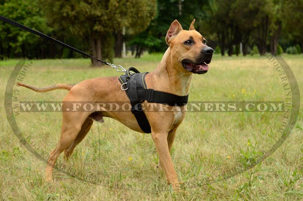 Snug fit nylon Pitbull harness with adjustable plastic buckles