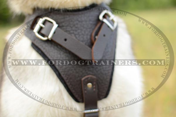 Soft Padded Chest Plate of Leather Siberian Husky Harness
